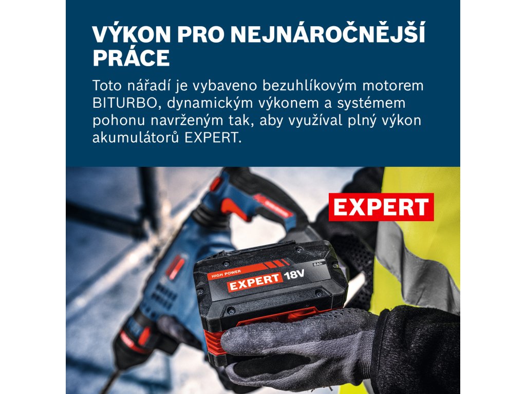 - To vše díky technologii BITURBO BRUSHLESS s vysoce výkonným motorem a systémem hnacího ústrojí, které byly navrženy tak, aby využívaly extrémní výkon našich akumulátorů EXPERT.